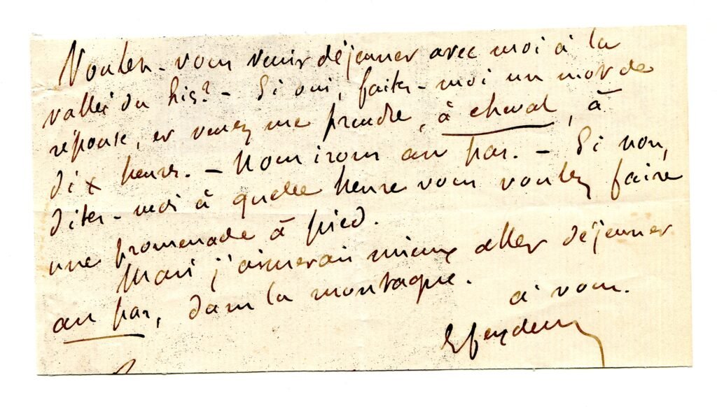 Petit billet autographe non daté mais signé par Ernest Feydeau. Collection personnelle.