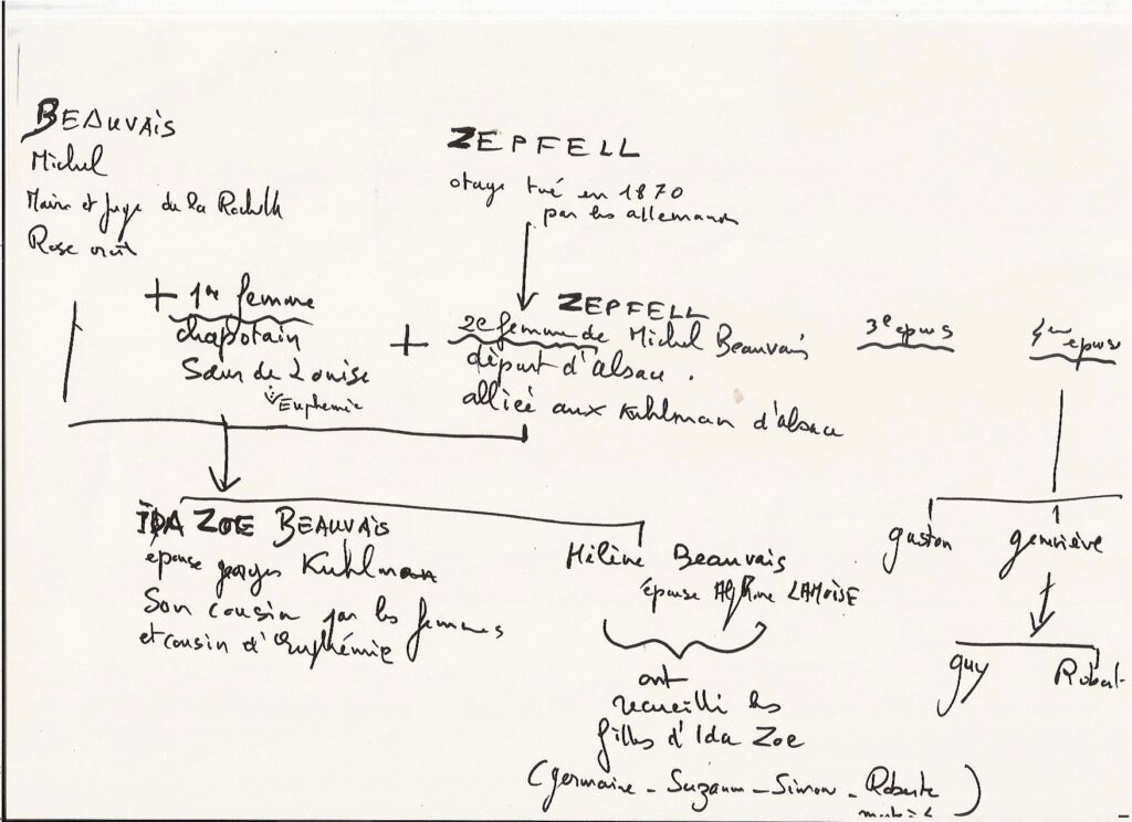 Et je veux ici rendre hommage à celui qui m’a permis de commencer à partir de quelque chose, mon grand-oncle Pierre Caillet, pari de Germaine Kuhlman et grand-père de Claire et Isabelle. Voici ces deux premiers feuillets de base, comportant certes quelques inexactitudes, à partir desquels j’ai tracé la voie des recherches … Un document qui a été essentiel pour moi.