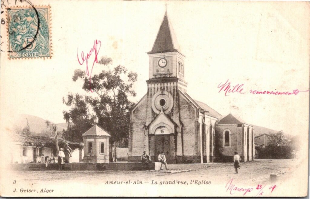 La petite colonie agricole d’Ameur el Aïn, dépendante de la commune de Marengo et qui avait été créée en juillet 1855 reçut la visite en janvier 1863 de Monseigneur Pavy, Évêque d’Alger (1) pour bénir la nouvelle église du village. Lors de cette cérémonie l’affluence fut grande et nombre de notables de la Mitidja y assistèrent. Marengo fut représenté officiellement par le commissaire civil de l’époque, Henri Le Génissel (2).