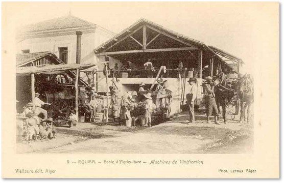 Fondée en 1881, l’École Pratique d’Agriculture et de Viticulture de Rouïba représente la première institution structurée d’enseignement agricole en Algérie. Installée dans la fertile plaine de la Mitidja, à l’est d’Alger, elle visait à former des praticiens qualifiés pour développer l’agriculture coloniale, avec un accent particulier sur la viticulture, essentielle dans un contexte marqué par la lutte contre le phylloxéra et l’adaptation aux conditions méditerranéennes.