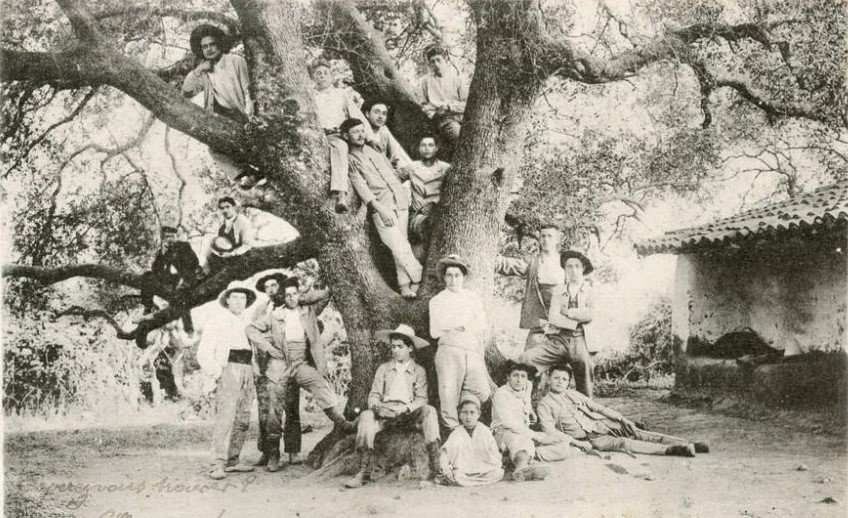 Une dernière photographie retrouvée quelque part continue de m’intriguer. Prise en 1890, il me semble y reconnaitre mon arrière-grand-père Georges Kuhlman à l’arrière plan à droite et appuyé sur le gros arbre …