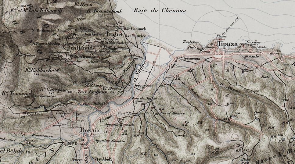 Emplacement du village de Desaix / Nador sur la carte d’état-major de Tipaza éditée en 1880.
