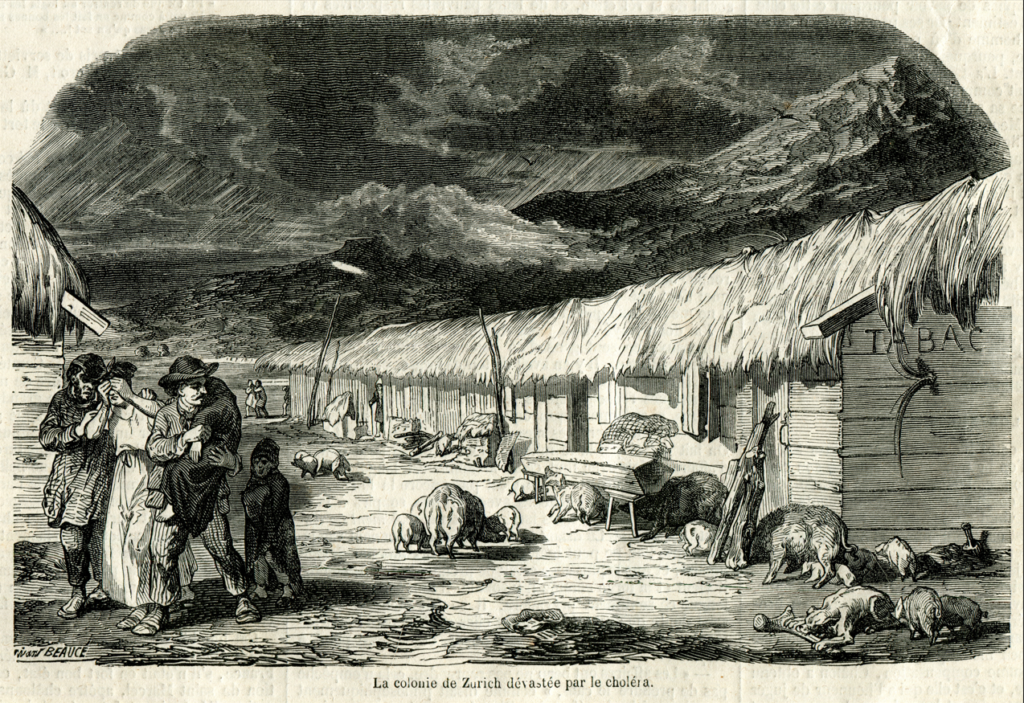 Ce premier été fut terrible. Le choléra pris la suite du paludisme et touchera durement Marengo et Zurich. Tout ceci qui ne manqua pas de tout désorganiser en rendant impossible le traitement de tous ces malades en même temps. Les médecins et infirmiers furent également affectés et il fut même presque impossible de trouver quelques volontaires pour porter les cercueils jusqu’au cimetière. De Malglaive dut lui-même pour remonter le moral de tous, montrer l’exemple et porter sur ses épaules les civières des victimes.