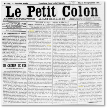 Le journal » le Petit Colon Algérien » daté du se félicita de l’initiative et appuya la requête du Maire.