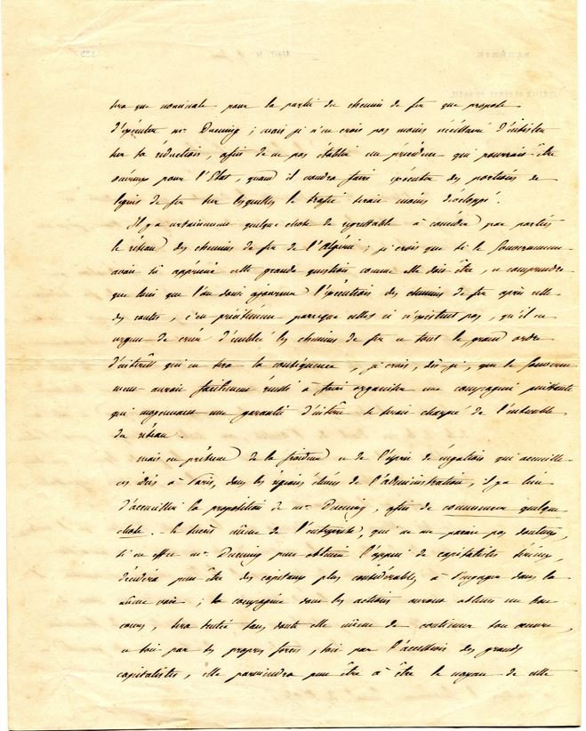 Il y a certainement quelque chose de regrettable à concéder par parties du réseau de chemin de fer de l’Algérie, je crois que si le gouvernement avait su apprécier cette grande question comme elle doit être que … que l’on … ajourner l’exécution des chemins de fer après celle des routes c’est précisément parce qu’elles n’existent pas , qu’il en argue de créer d’emblée à tout le grande ordre.