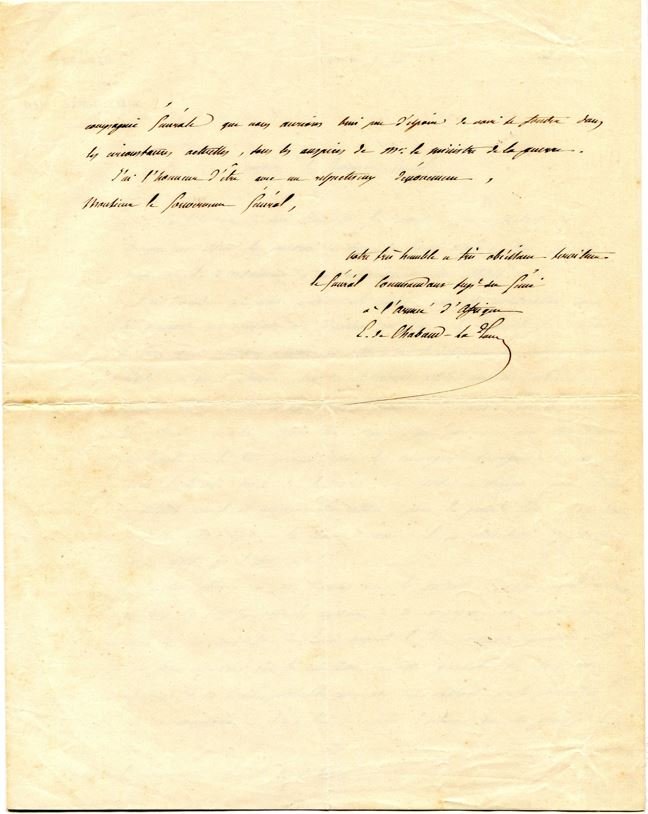 Lettre confidentielle du Général Chabaud Latour au Gouverneur Randon 9 juin 1855. Collection personnelle de l’auteur.