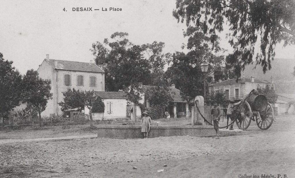 Le 15 mars 1877, le plan du village est dressé. Le 28 août une décision préfectorale précise les travaux à réaliser pour le peuplement du centre, prévu dès la fin de l’année : chemin d’accès, y compris le pont sur l’oued Ismaden, ouverture des rues et boulevards, aménagement des eaux : lavoir, fontaine, abreuvoir, conduite, creusement d’un puits. L’affaire, qui a traîné 6 ans, est maintenant menée rondement. Les travaux sont adjugés le 3 octobre à un entrepreneur de Marengo Adrien Gay. Fin 1877, paradoxalement le Maire de Marengo Michel Eugène Beauvais doit rappeler au Préfet qui lui transmet les ordres, que Desaix fait partie de la commune de Cherchell, distante de plus de 20 km. La Préfecture et les Ponts et Chaussées entrent en conflit, chacune revendiquant le pouvoir de désigner les lots. Mais les premiers colons sont déjà arrivés. Les uns s’installent comme ils le peuvent, d’autres repartent à Alger déclarer à la Préfecture qu’ils n’ont pu prendre possession de leur lot urbain. Lors des expropriations, on avait laissé entendre que les propriétaires auraient la jouissance de leurs terres jusqu’à la récolte. Fin décembre, le Préfet demanda au Maire de Marengo de faire libérer immédiatement les terres expropriées. On verra cohabiter allocataires et anciens propriétaires.