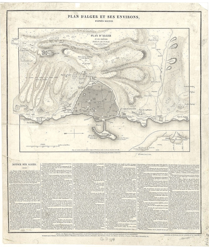 Plan de la rade d’Alger dessiné en 1808 par le Colonel Vincent-Yves Boutin. Source BNF