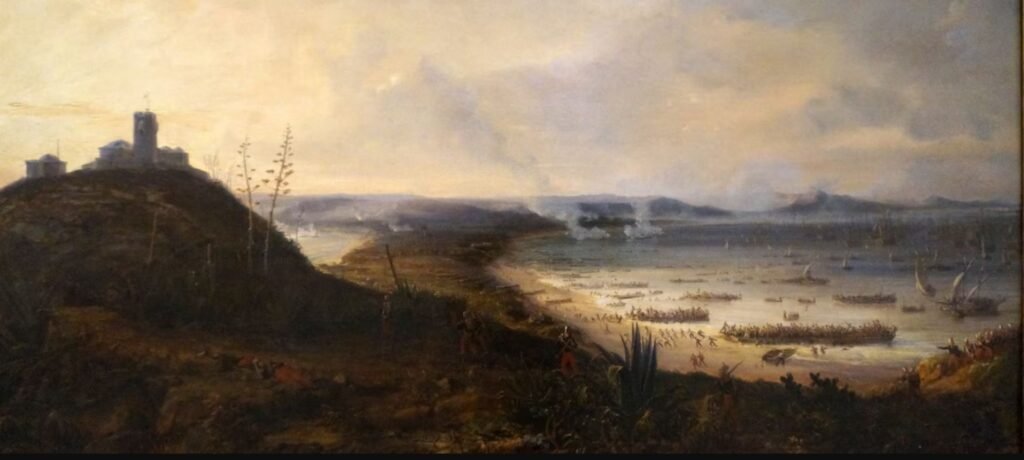 Débarquement de l’armée française près d’Alger, plage de Sidi Ferruch, 14 juin 1830 ; par Pierre Julien Gilbert, 1836.
