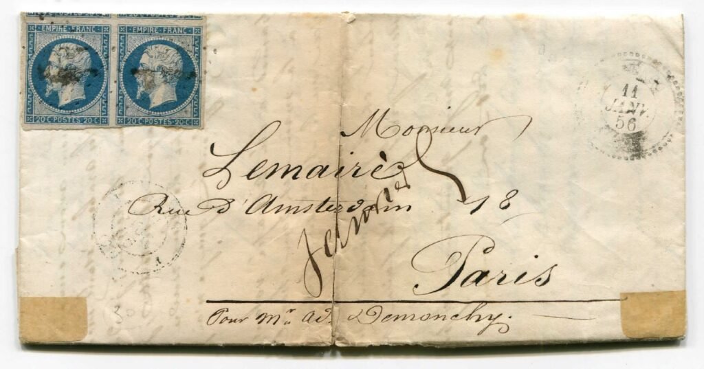 lettre envoyée de Marengo par Jean-Baptiste Monniot (1), conducteur de travaux à Monsieur Lemaire pour Adolphe Demonchy datée du 9 janvier 1856. Eugène François Lemaire, entrepreneur de bâtiments, était tuteur et oncle du fils d’Auguste Adolphe et demeurait 43, grande rue des Batignolles. Collection personnelle de l’auteur.